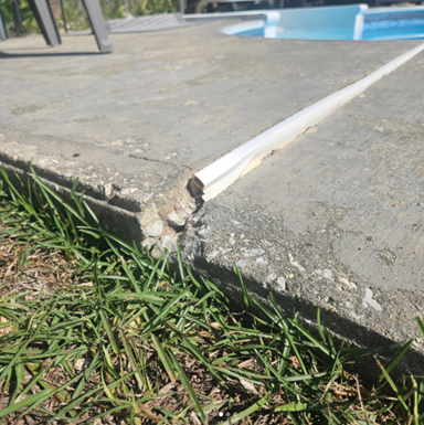 Approximately 80% of the slab that was against the house was still in place with the void under it. The pool deck area had sunken four inches in a short distance. Concrete Corrections used their Precision Jacks (a compact, ergonomic two-piece jack system designed to work in unison with Prime Resin’s line of Precision Lift Lifting Foams) to lift the fallen slab. This was needed to create equal voids because the area where the slab broke had become pinched against the house foundation. Otherwise, when injecting, it would pick up the broken edge instead of making the pinched area release. Workers could then inject along the back side of the house to fill voids while monitoring until the slab moved slightly.
